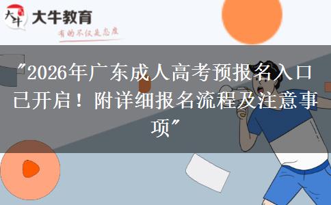 2026年广东成人高考预报名工作已经开始,也许有需要提升学历的同学们已经做好准备,打算报考成考。为了帮助大家顺利完成预报名,我们将为大家详细介绍报名流程及注意事项。